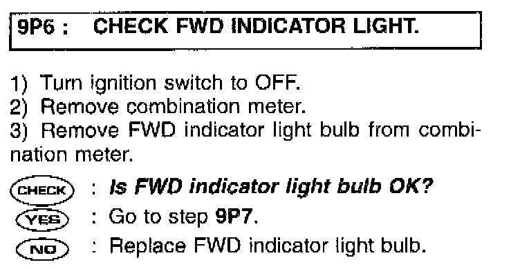 9P6 CHECK FWD INDICATOR LIGHT.