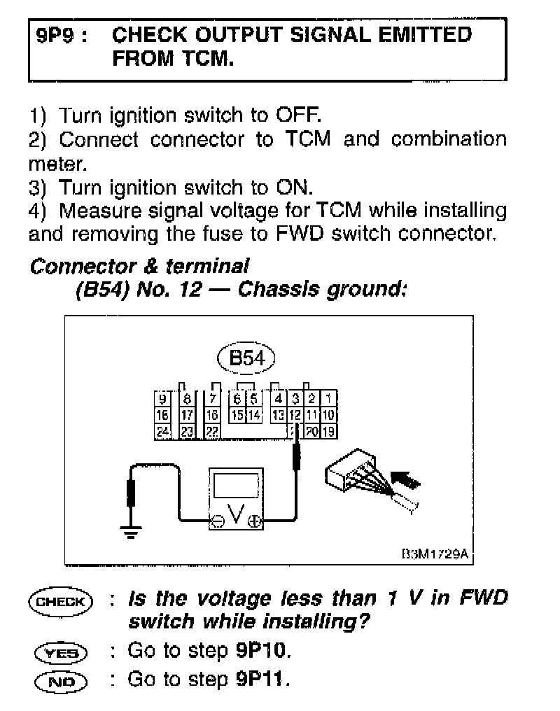 9P9 CHECK OUTPUT SIGNAL EMITTED FROM TCM.