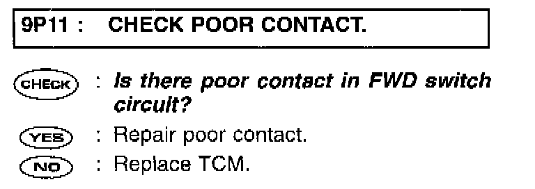9P2 CHECK HARNESS CONNECTOR BETWEEN TCM AND FWD SWITCH.