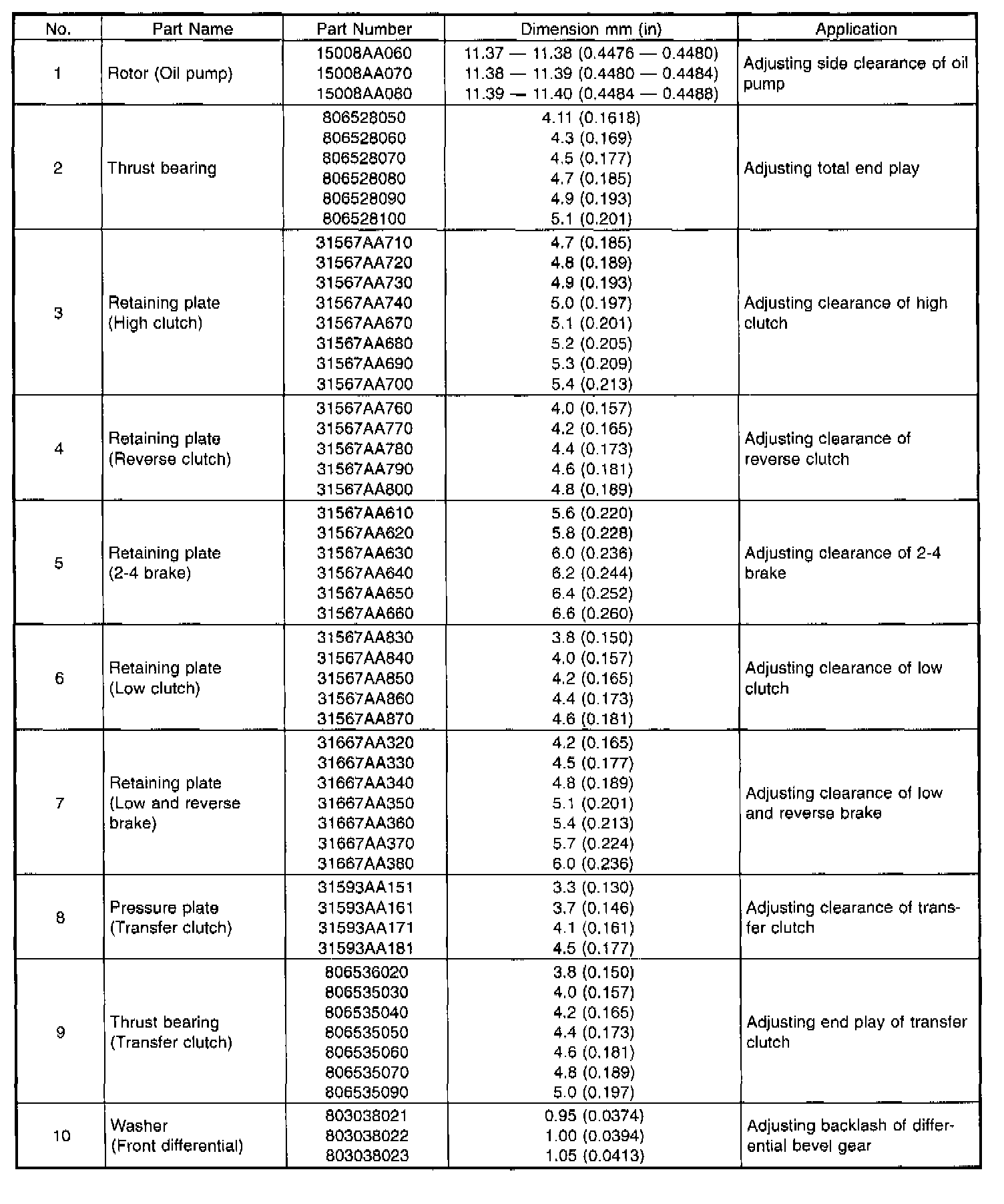 A/T Technical Data