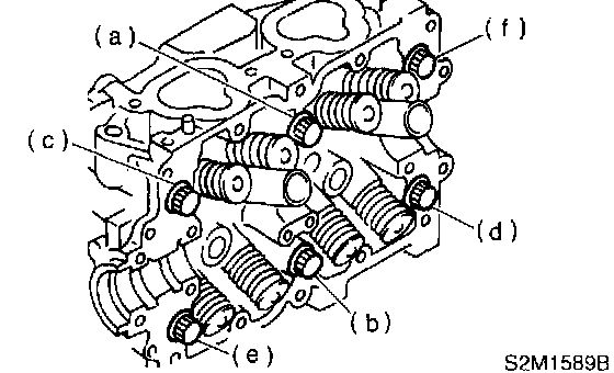 5. Tighten bolts (c), (d), (e) and (f) to 15 Nm (1.5 kg-m, 11 ft. lbs.).