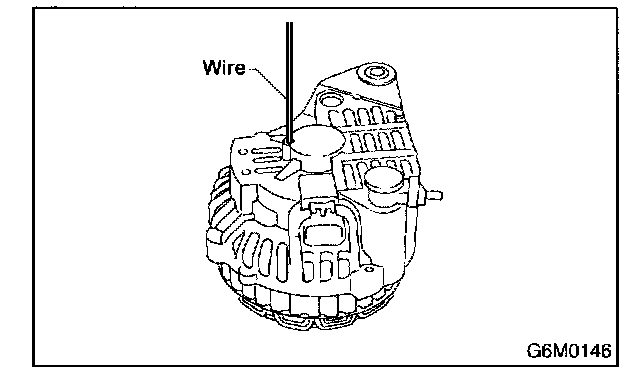 Before assembling, press the brush down into the brush holder with your finger and secure in that position by passing a [2 mm (0.08 in) dia. length 4 to 5 cm (1.6 to 2.0 in)] wire through the hole shown in the figure.