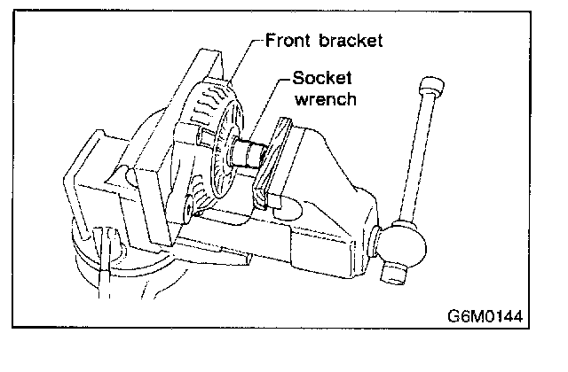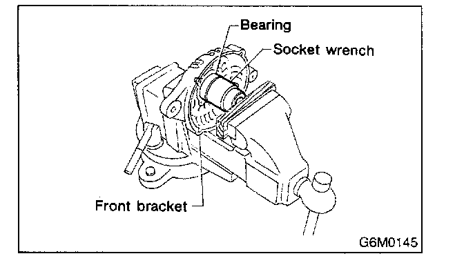 2. Closely install a fit tool on the bearing inner race. Press the bearing down out of front bracket with a hand press or vise. A socket wrench can serve as the tool.