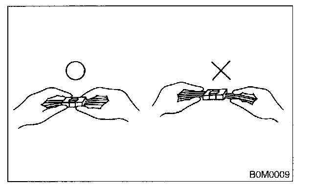 - After disconnecting connectors, visually check for contamination, distortion, or damage of connectors before reconnecting them. Also, check for loose or missing terminals.