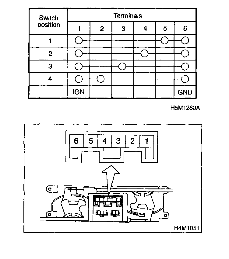 Check continuity between terminals at each switch position.