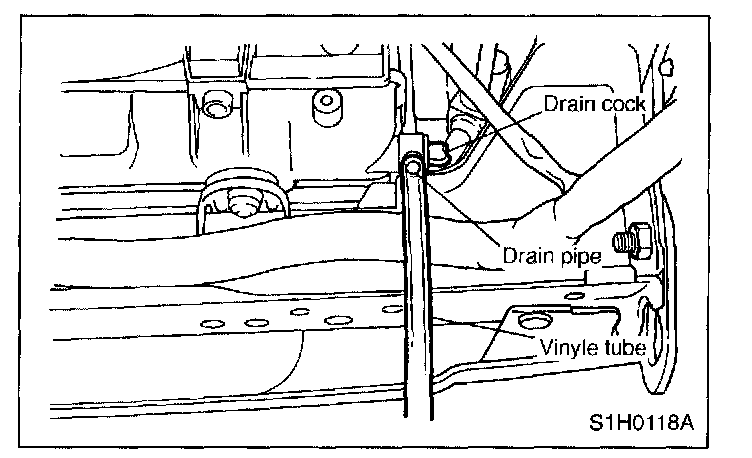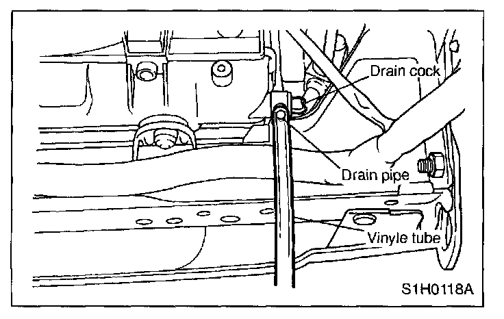 8. Tighten radiator drain plug securely after draining coolant. (Drain tube may face downward.)