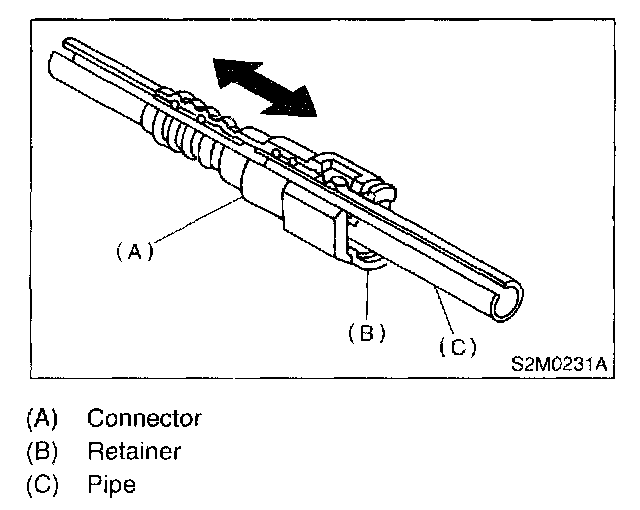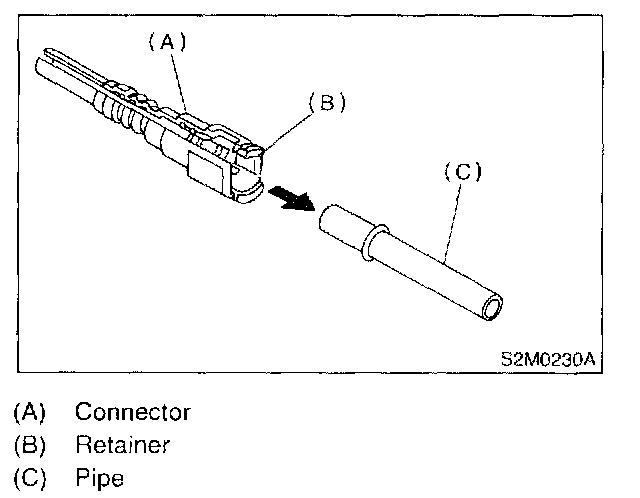 1. Set new retainer (B) to connector (A).