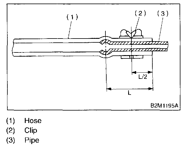 2. Connect fuel delivery hose to pipe in engine compartment with an overlap of 20 to 25 mm (0.79 to 0.98 in).