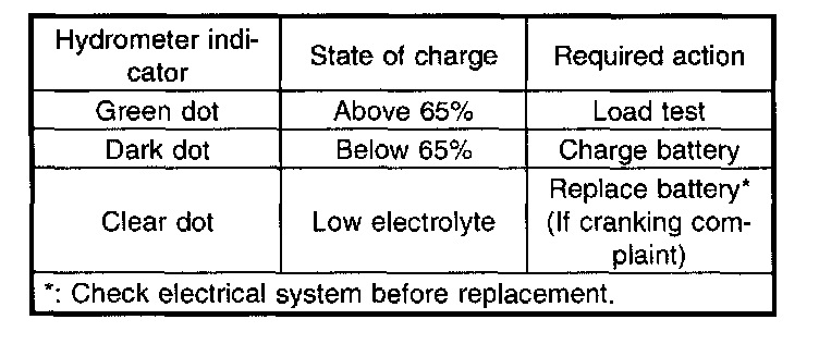 4. CHECK HYDROMETER FOR STATE OF CHARGE