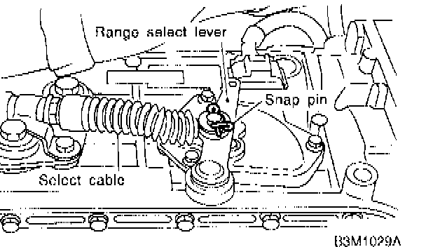 5) Remove snap pin from range select lever.