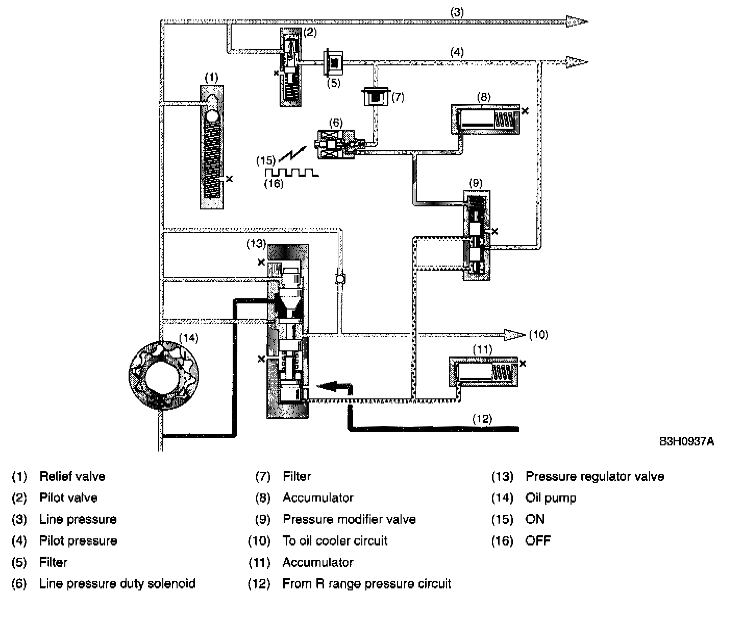 - The pilot pressure applied to the pressure modifier valve is regulated by the line pressure controlling duty solenoid A (line pressure) and changed into the pressure modifier pressure.