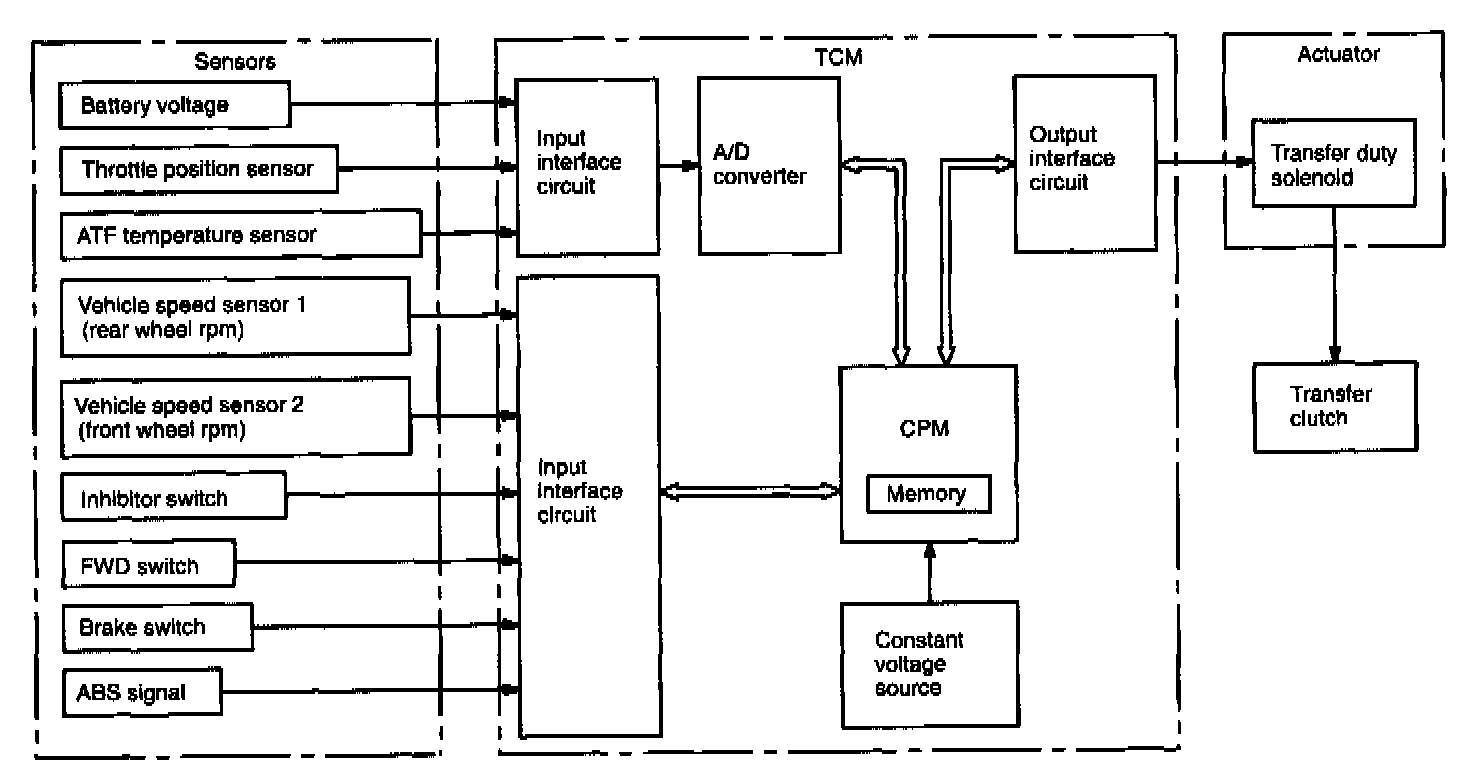- The line pressure is led also to the transfer control valve where the pressure is regulated to the transfer clutch pressure by the transfer duty pressure. (The transfer clutch pressure varies with the transfer duty pressure.)