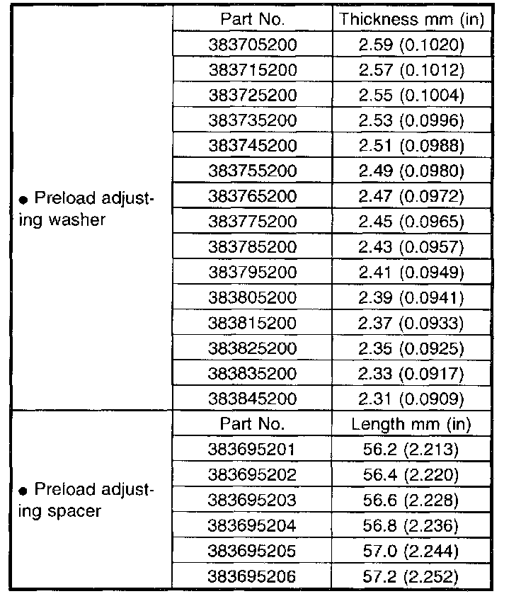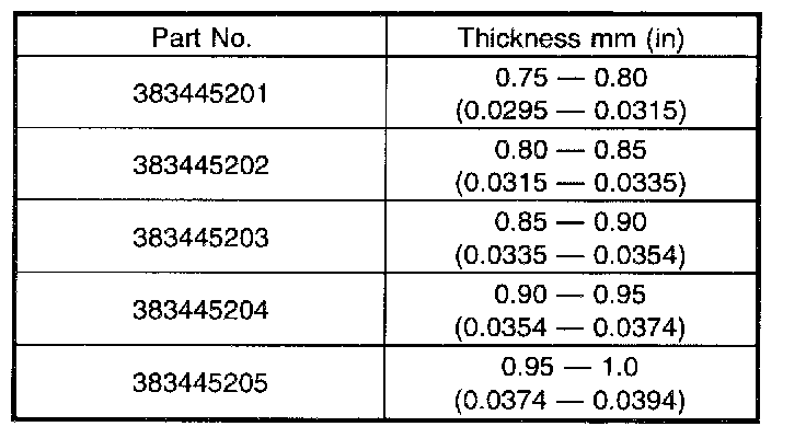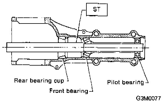 - Thoroughly clean the surfaces on which the shims, washers and bearings are to be installed.