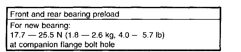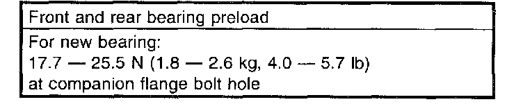 For new bearing: 17.7-25.5 N (1.8-2.6 kg, 4.0 - 5.7 lb.) at companion flange bolt hole