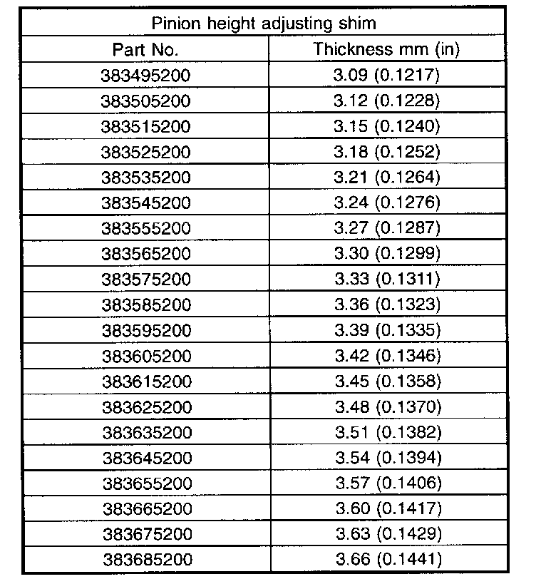 Adjust drive pinion height with shim installed between rear bearing cone and the back of pinion gear.