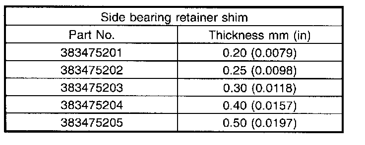 CAUTION: Each shim, which is installed to adjust the side bearing preload, should be kept together with its mating retainer.