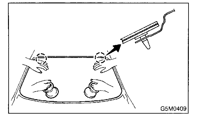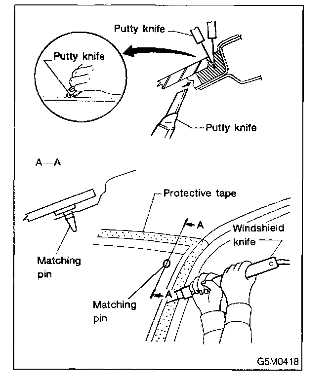 CAUTION: When making through-hole into adhesive layer and cutting the adhesive, be careful not to damage interior and exterior parts.