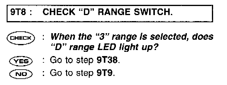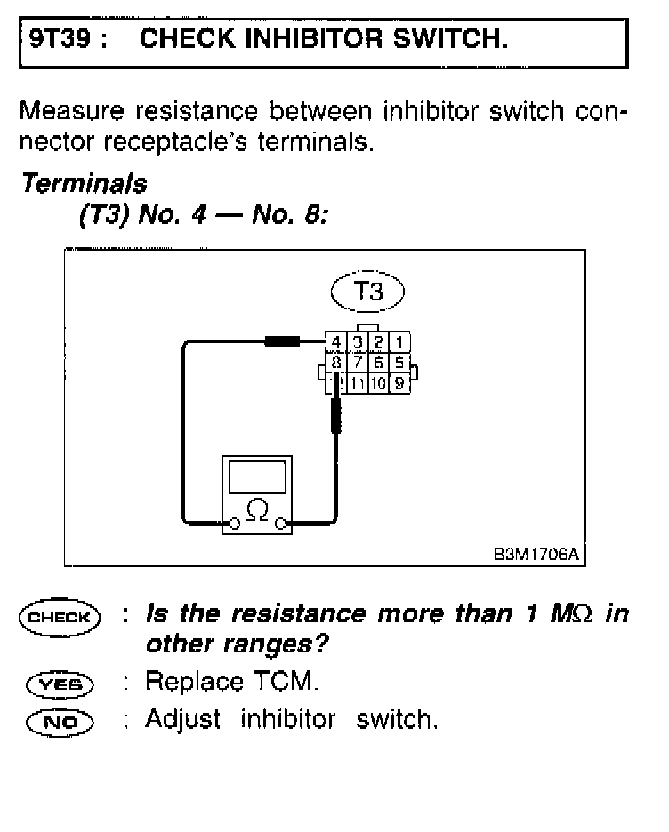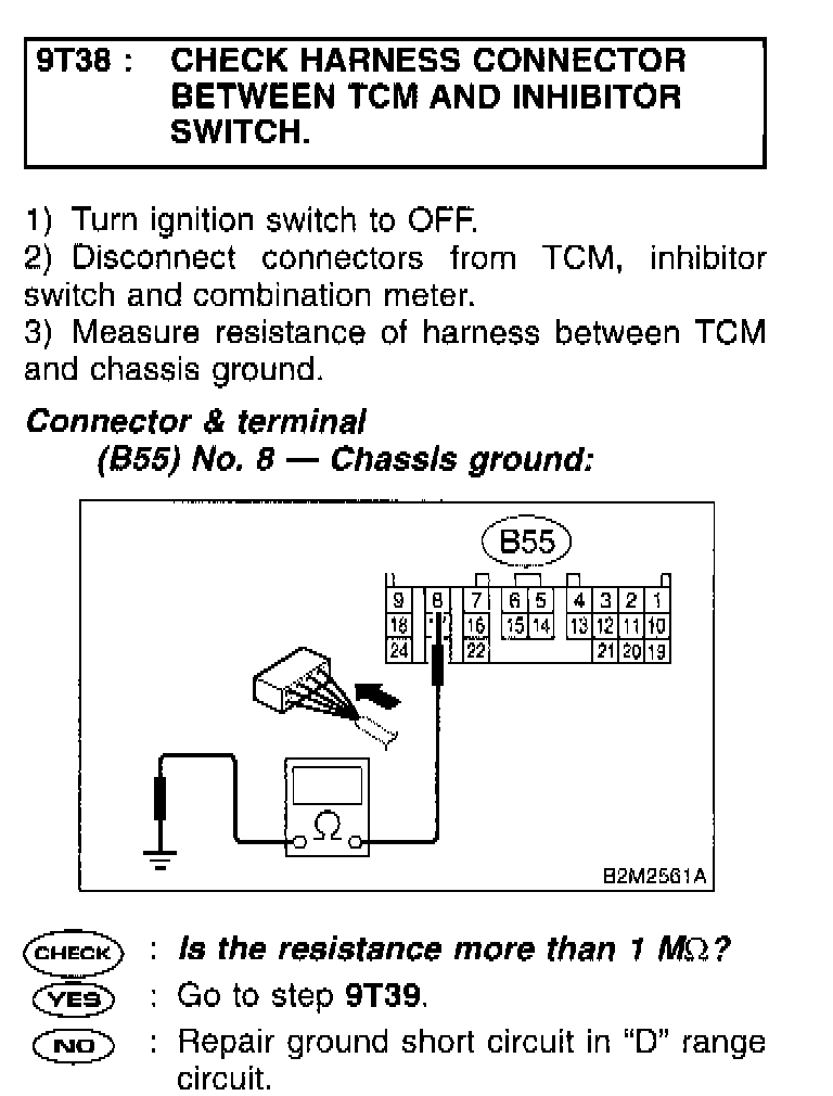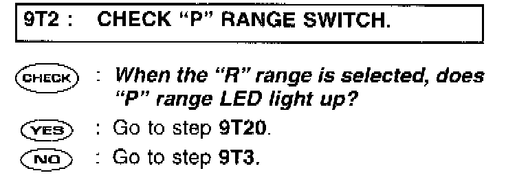 9T38: CHECK HARNESS CONNECTOR BETWEEN TCM AND INHIBITOR SWITCH.
