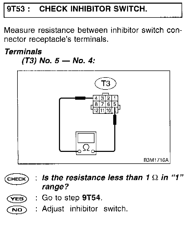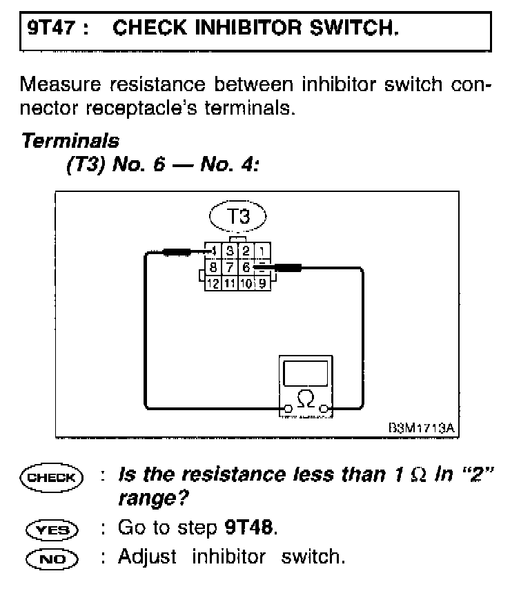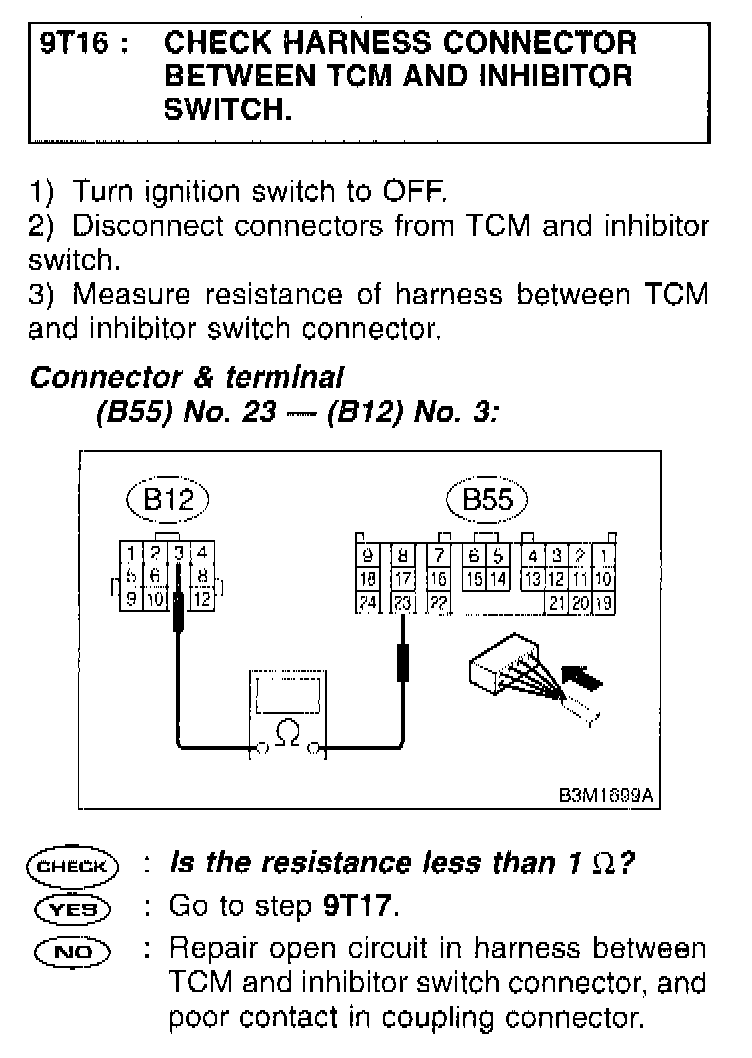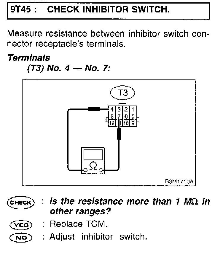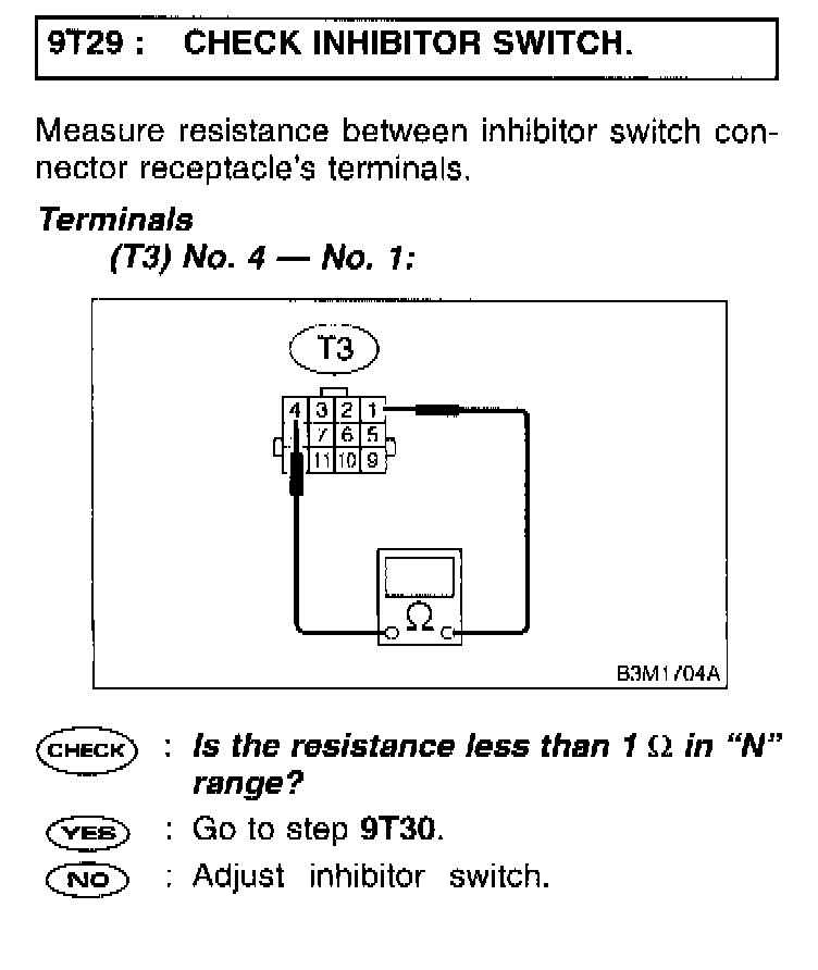 9T28: CHECK HARNESS CONNECTOR BETWEEN TCM AND INHIBITOR SWITCH.