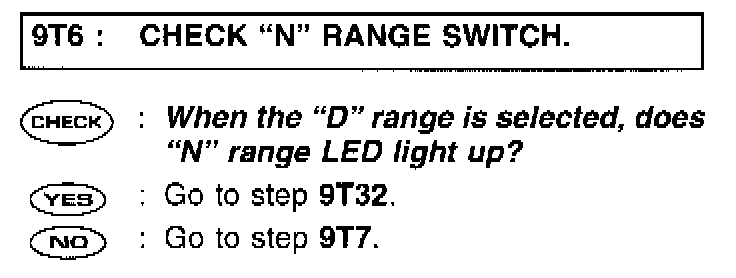 9T32: CHECK HARNESS CONNECTOR BETWEEN TCM AND INHIBITOR SWITCH.