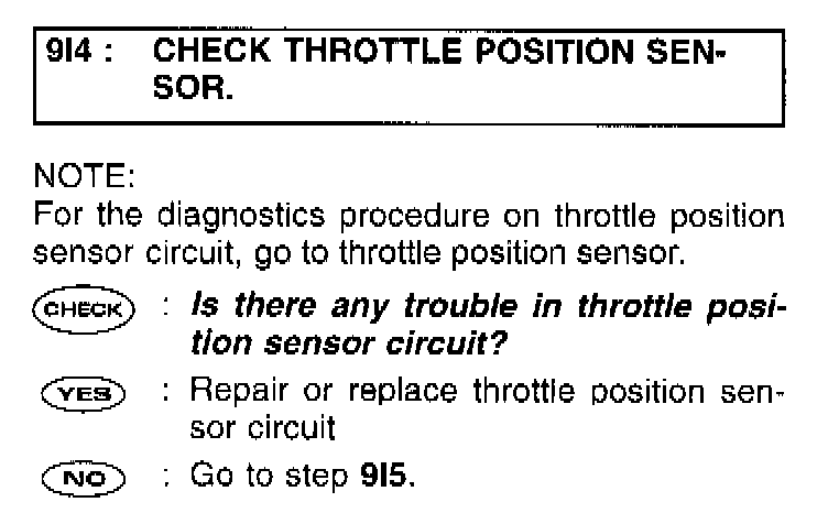 9I4: CHECK THROTTLE POSITION SENSOR.