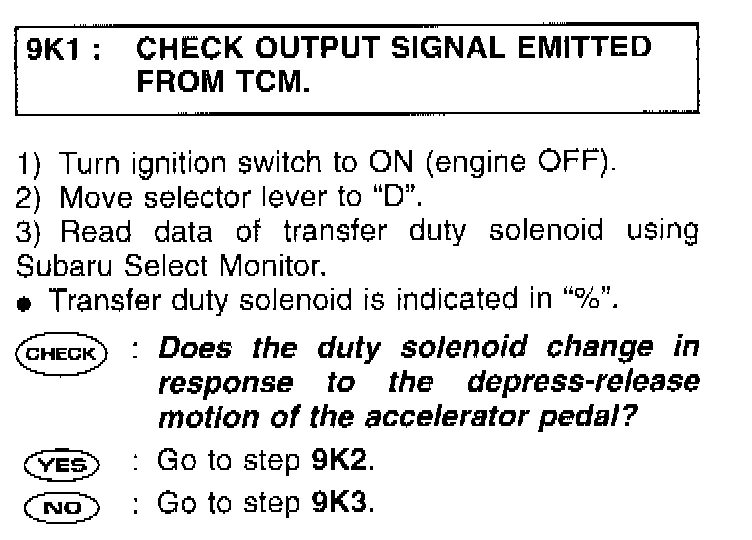 9K1: CHECK OUTPUT SIGNAL EMITTED FROM TCM.