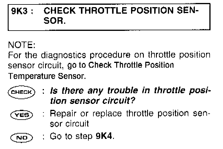 9K3: CHECK THROTTLE POSITION SENSOR.
