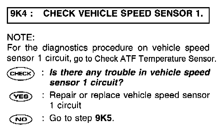 9K4: CHECK VEHICLE SPEED SENSOR 1.