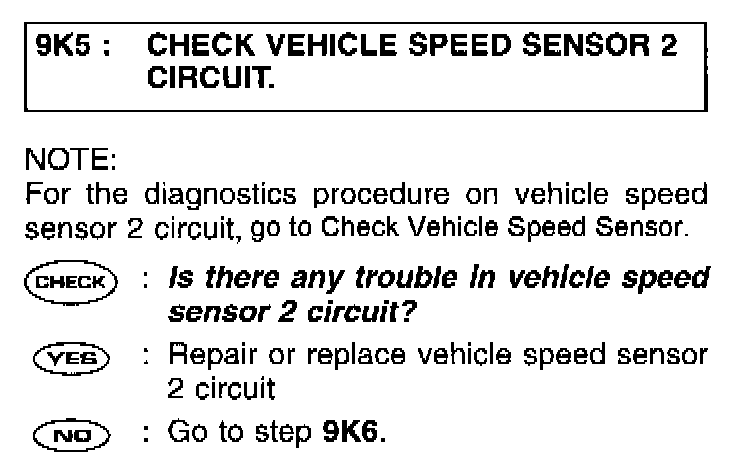 9K5: CHECK VEHICLE SPEED SENSOR 2 CIRCUIT.