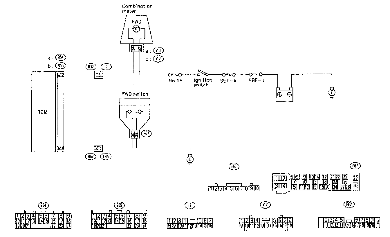 9P2: CHECK HARNESS CONNECTOR BETWEEN TCM AND FWD SWITCH.