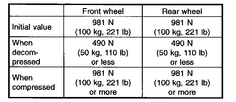 1. When using the brake tester, depress brake pedal with braking force of 981 N (100 kg, 221 lb.).