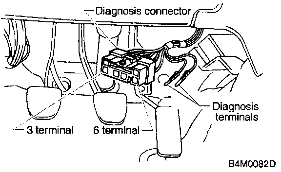 1. Connect diagnosis terminals to terminals No. 3 and No. 6 of the diagnosis connector beside driver's seat heater unit.