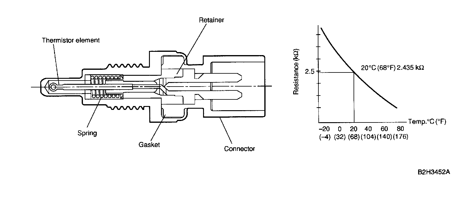 - The engine coolant temperature sensor is located on the engine coolant pipe which is made of aluminum alloy. Its thermistor changes resistance with respect to temperature. A engine coolant temperature signal converted into resistance is transmitted to the ECM to control the amount of fuel injection, ignition timing, purge control solenoid valve, etc.