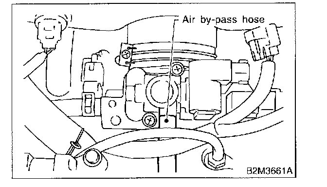 3. Disconnect air by-pass hose from idle air control solenoid valve.