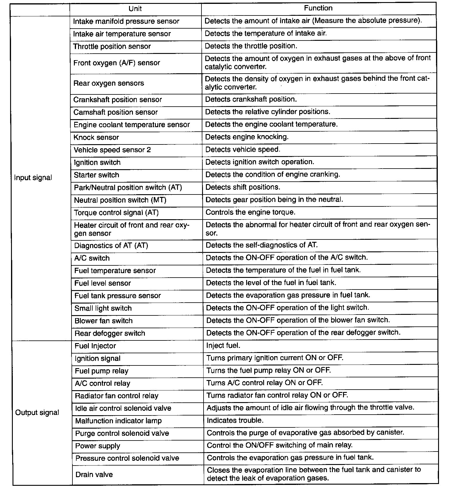 Input and Output Signals