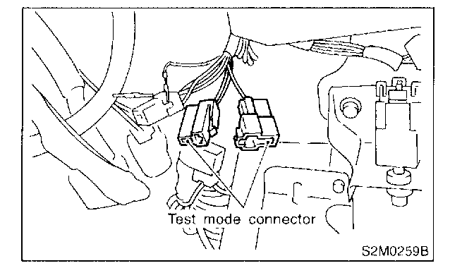 4. Connect test mode connector at the lower portion of instrument panel (on the driver's side), to the side of the center console box.