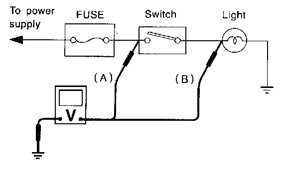 1. VOLTAGE MEASUREMENT1. Using a voltmeter, connect the negative lead to a good ground point or negative battery terminal and the positive lead to the connector or component terminal.