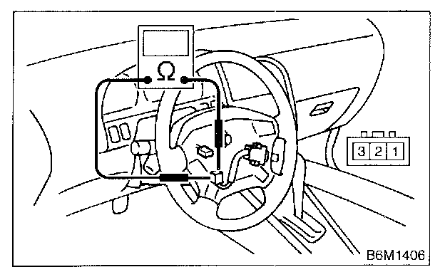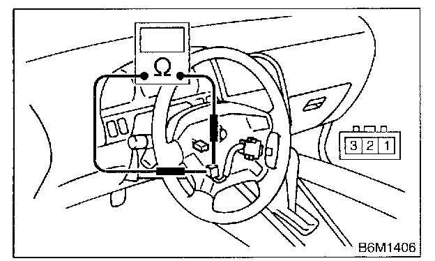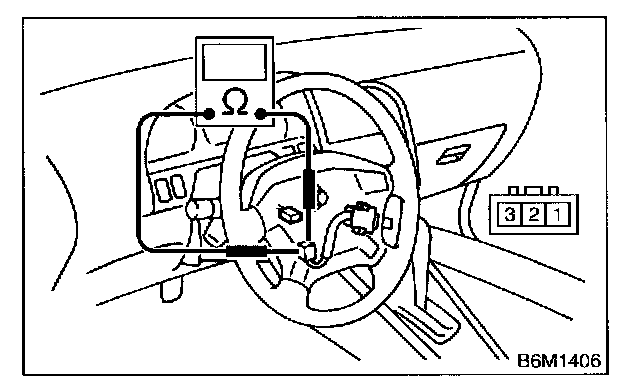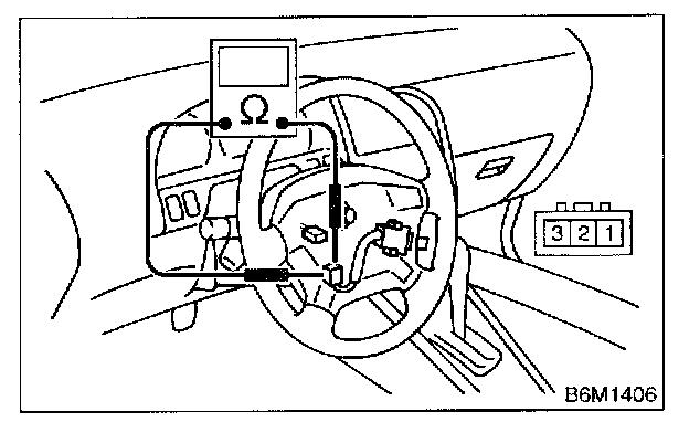 Measure resistance between terminals of cruise control command switch connector (switch side) to check the switch operation.