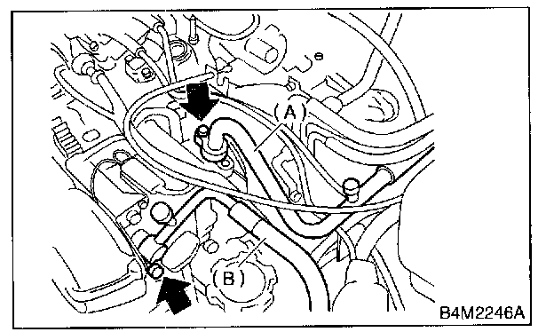 4. Remove low-pressure hose (A) (Flexible hose Ps) and high-pressure hose (B) (Flexible hose Pd).