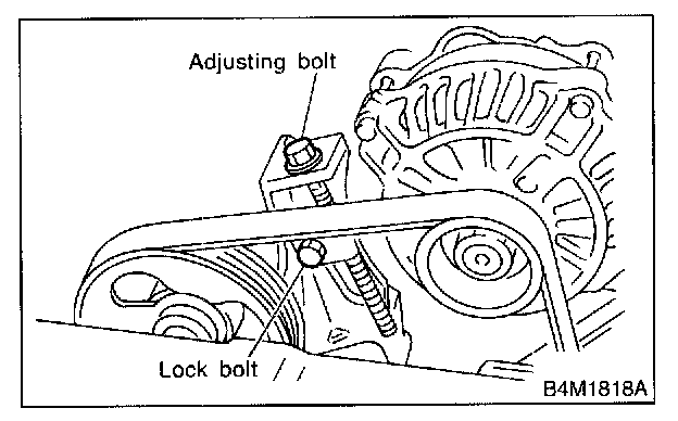 1. Loosen lock bolt on alternator bracket.