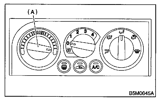 3. Set temperature control switch (A) to "FULL HOT" and then disconnect temperature control cable from bottom of heater unit.