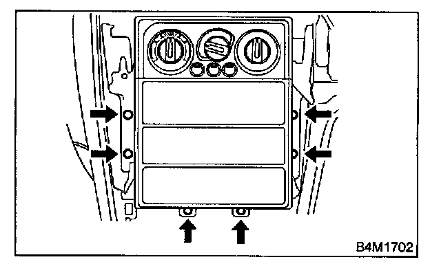 6. Remove fitting screws, and slightly pull radio bracket out from center console while disconnecting connector.