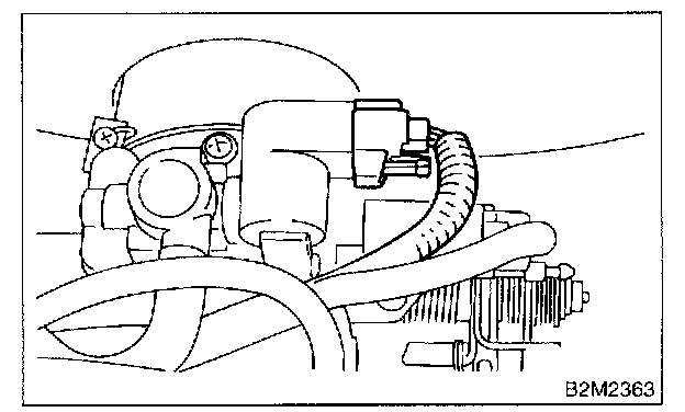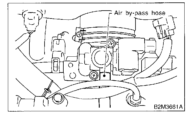 3. Disconnect air by-pass hose from idle air control solenoid valve.