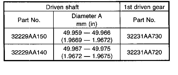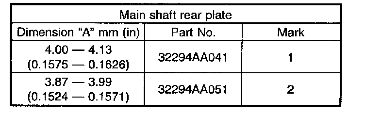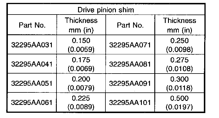 Pinion shaft to axle drive shaft clearance: 0 - 0.2 mm (0 - 0.008 inch)