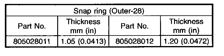 Thrust washer (52 x 61 x t) to ball bearing side clearance: 0.05 - 0.30 mm (0.0020 - 0.0118 inch)