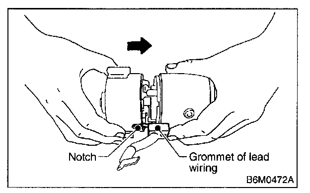 When assembling end frame to yoke, align notched portion of end frame with lead wire grommet.