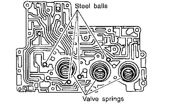 1. Install accumulator pistons, valve springs and steel balls to upper valve body