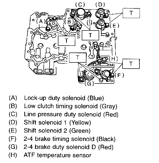 2. Remove the duty solenoid S. solenoids and sensor from the lower valve body.