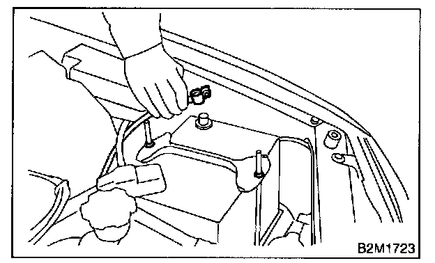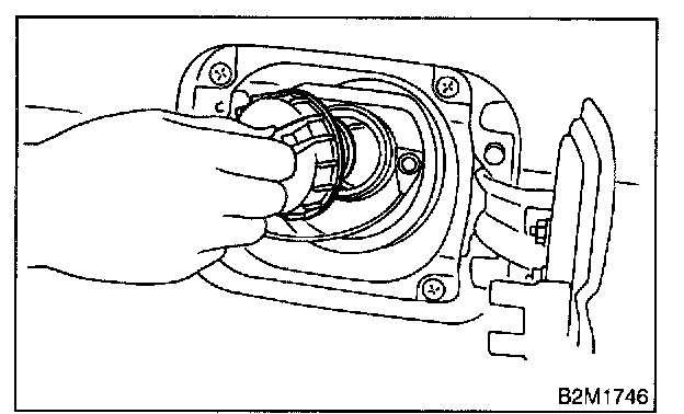 1. Set the vehicle on the lift.2. Open fuel flap lid, and remove fuel filler cap.