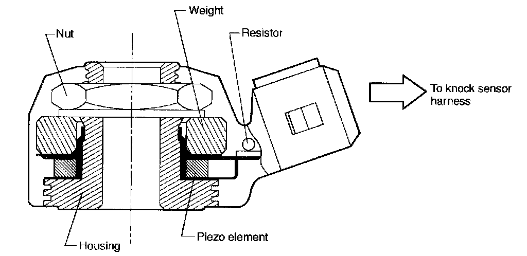 - It consists of a piezo-electric element, weight, and case. If knocking occurs in the engine, the weight in the case moves causing the piezo-electric element to generate a voltage.